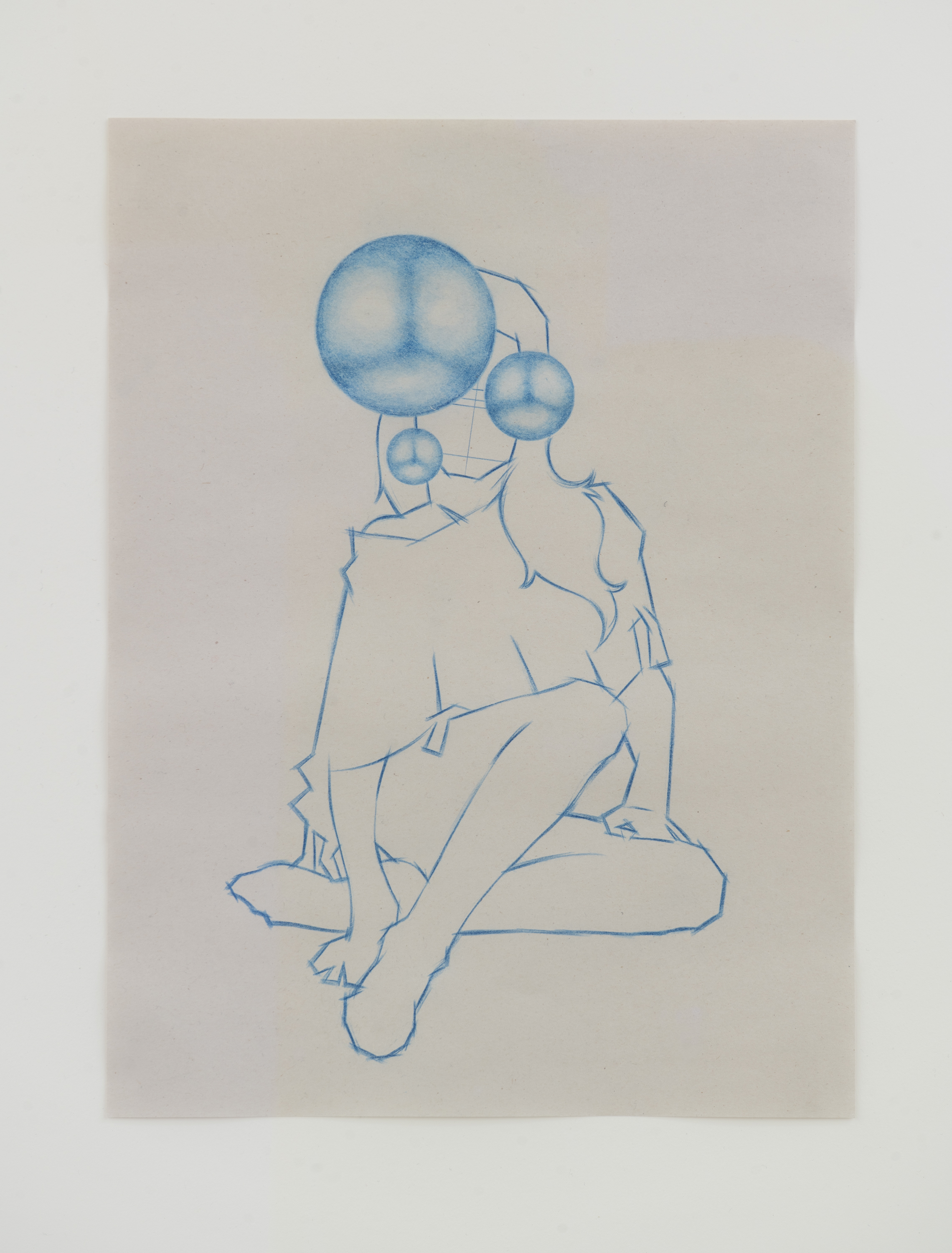 Connor Bokovay. Particle Obvious . Coloured pencil on newsprint. 2026.
