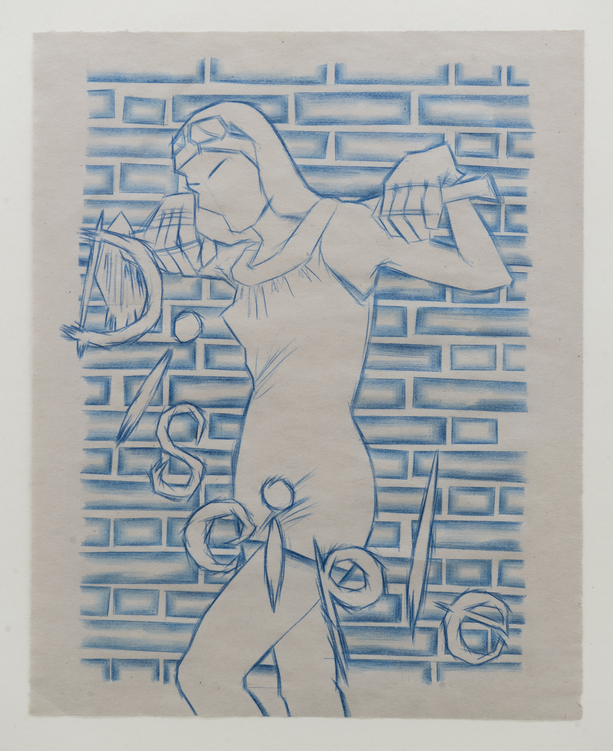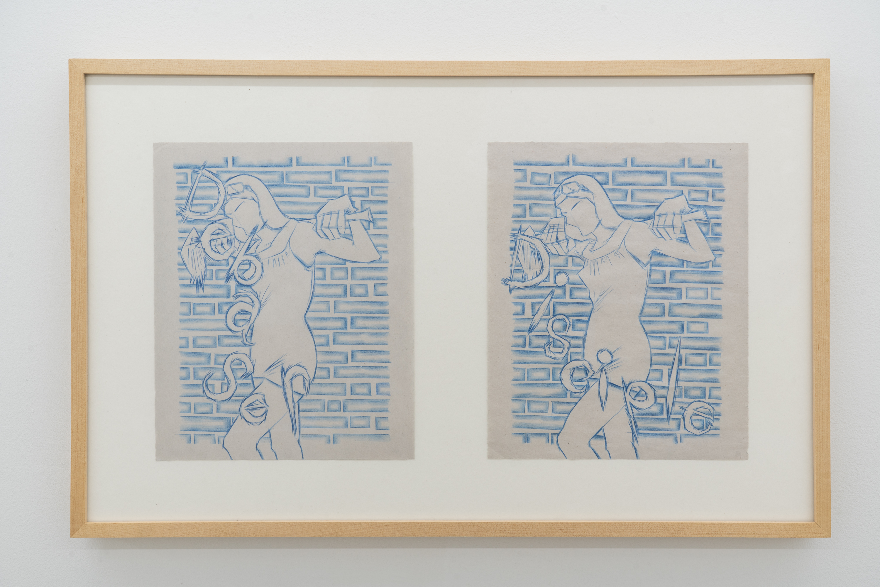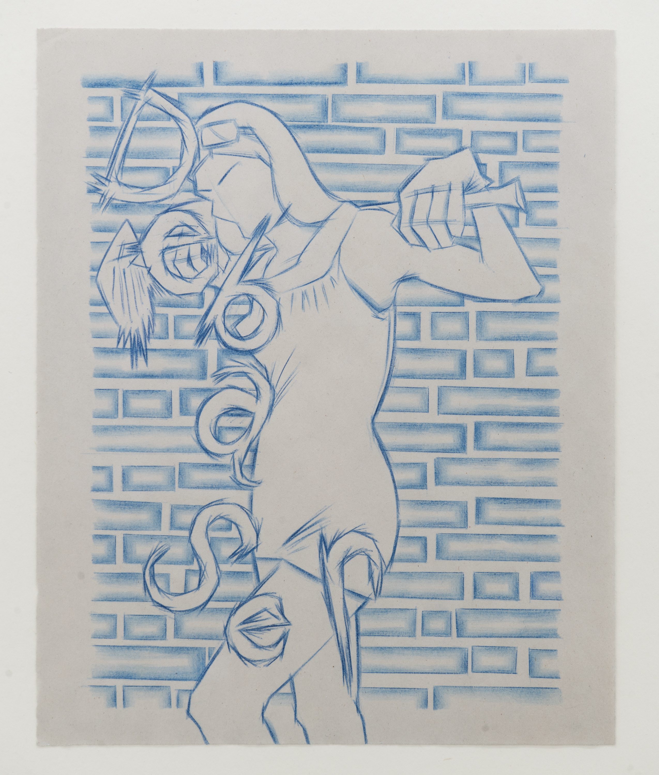 Connor Bokovay. Undercover Pump .Coloured pencil on newsprint. 14 ¾ x 20 in. 2026