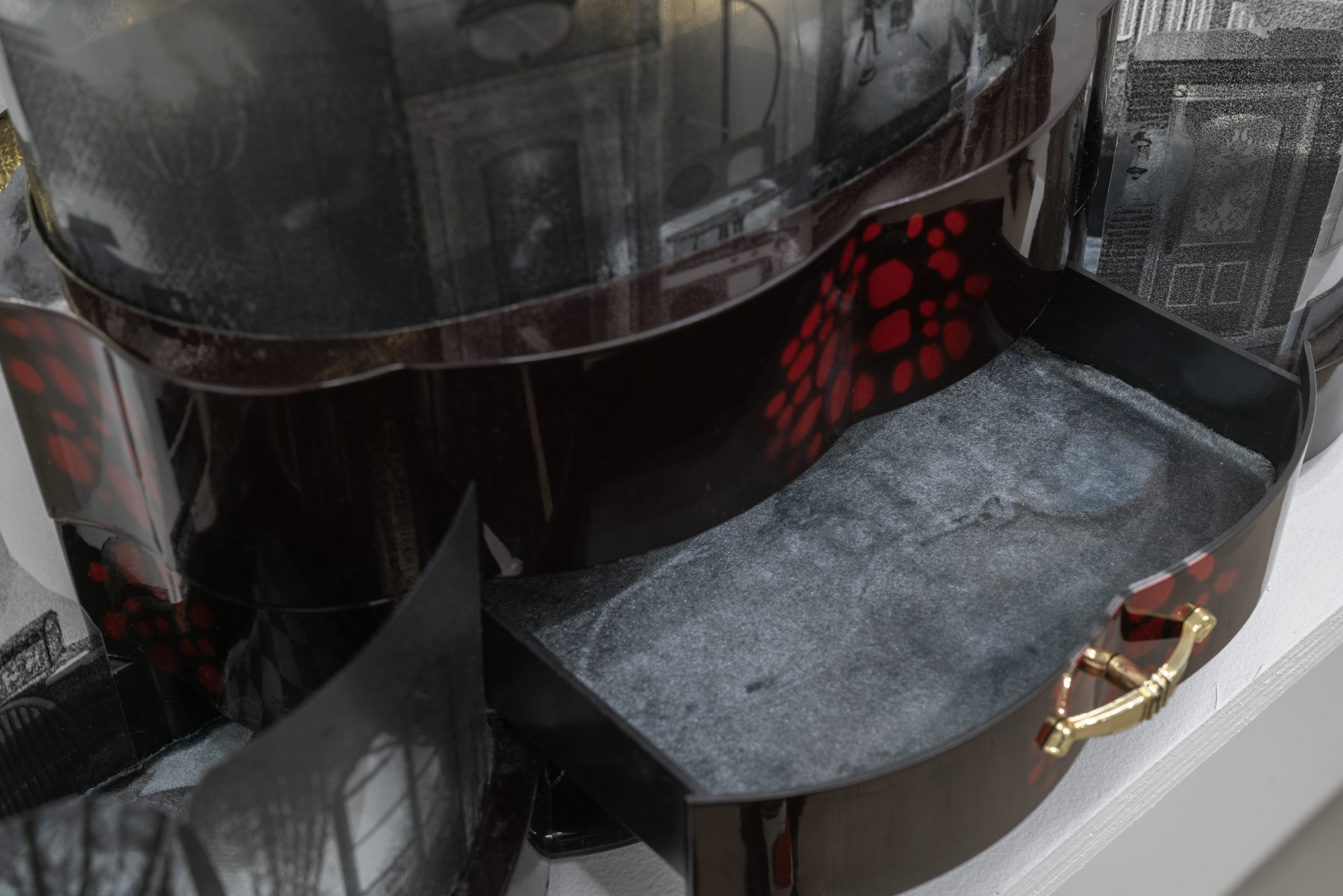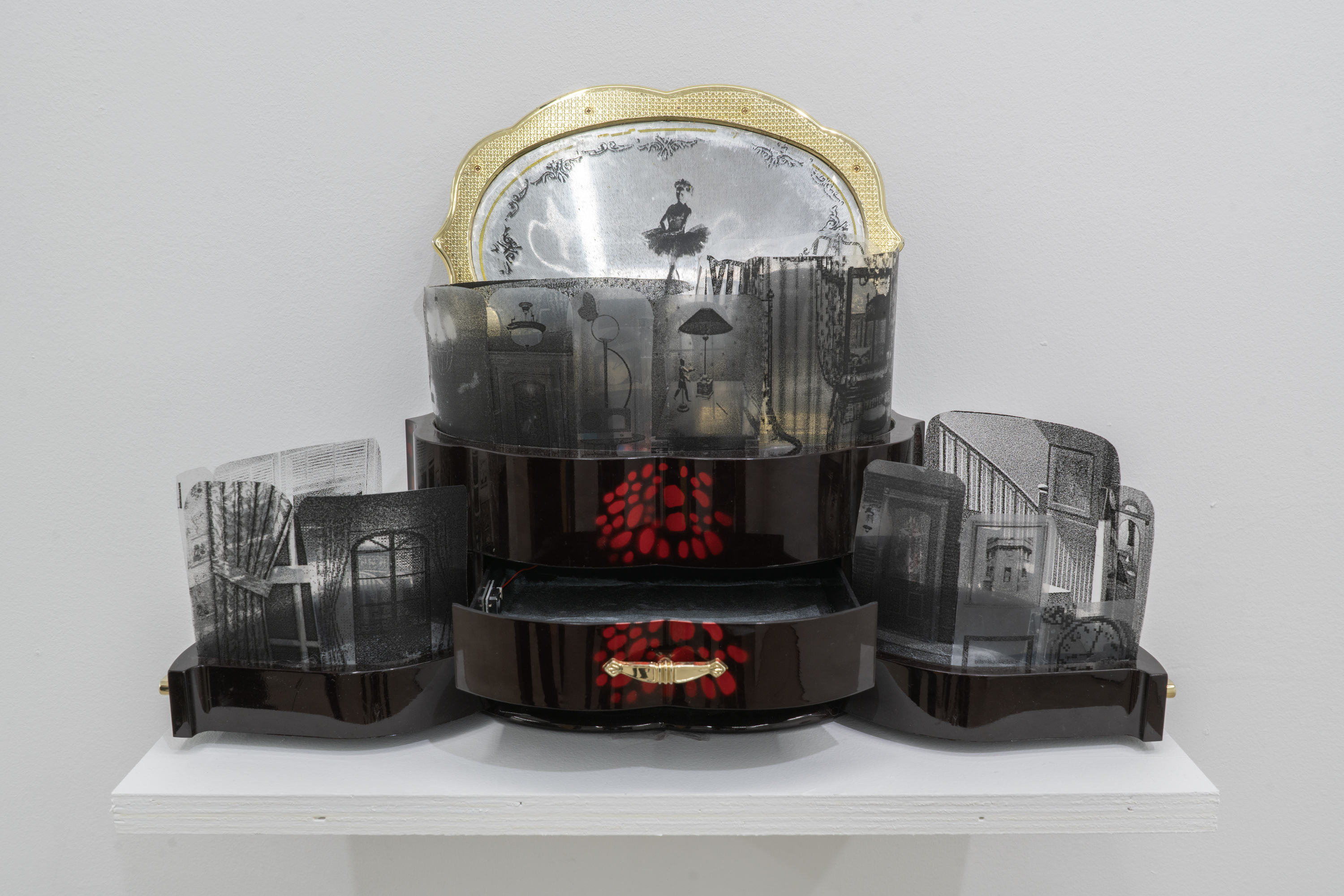 Isabella Kressin. Girl Detective . Music box, laser print on velvet, transparency sheets, glue, tape, greeting card sound module
